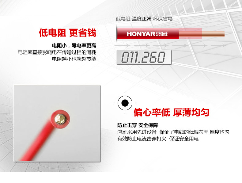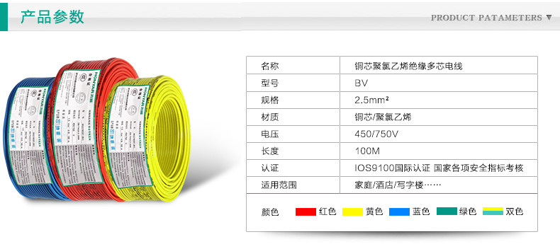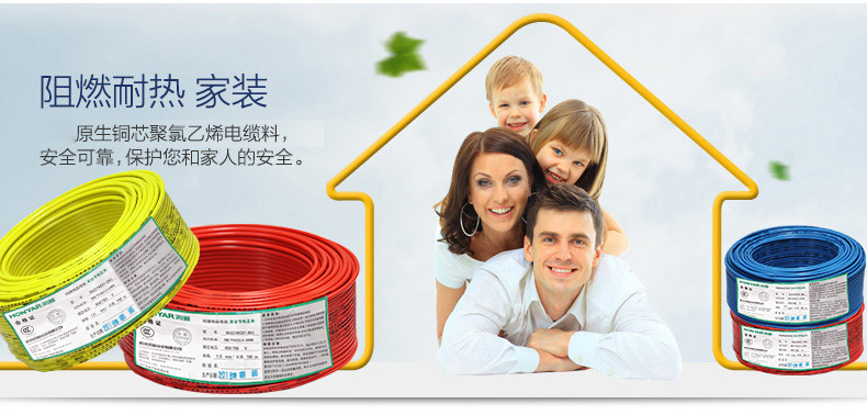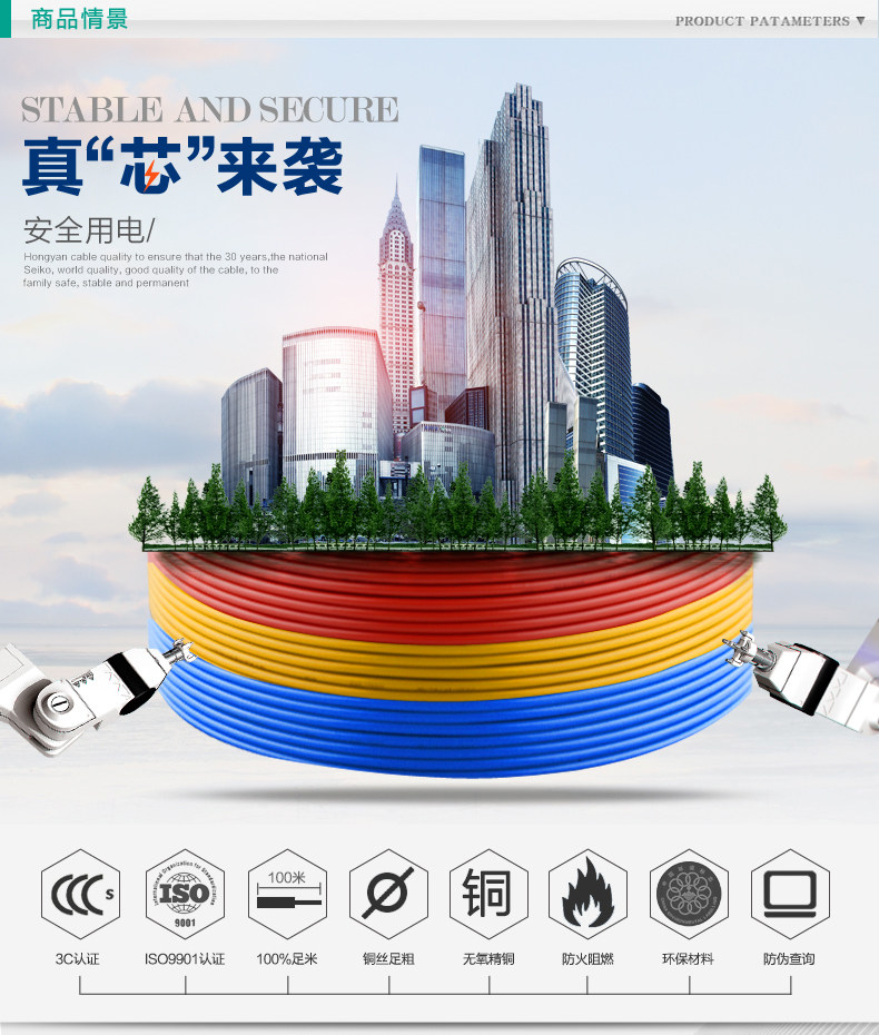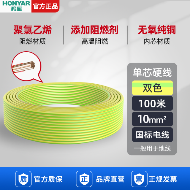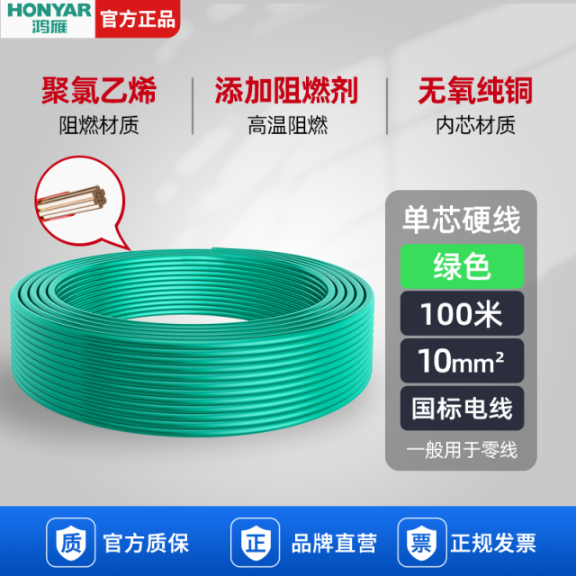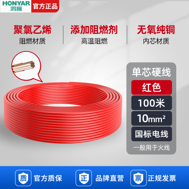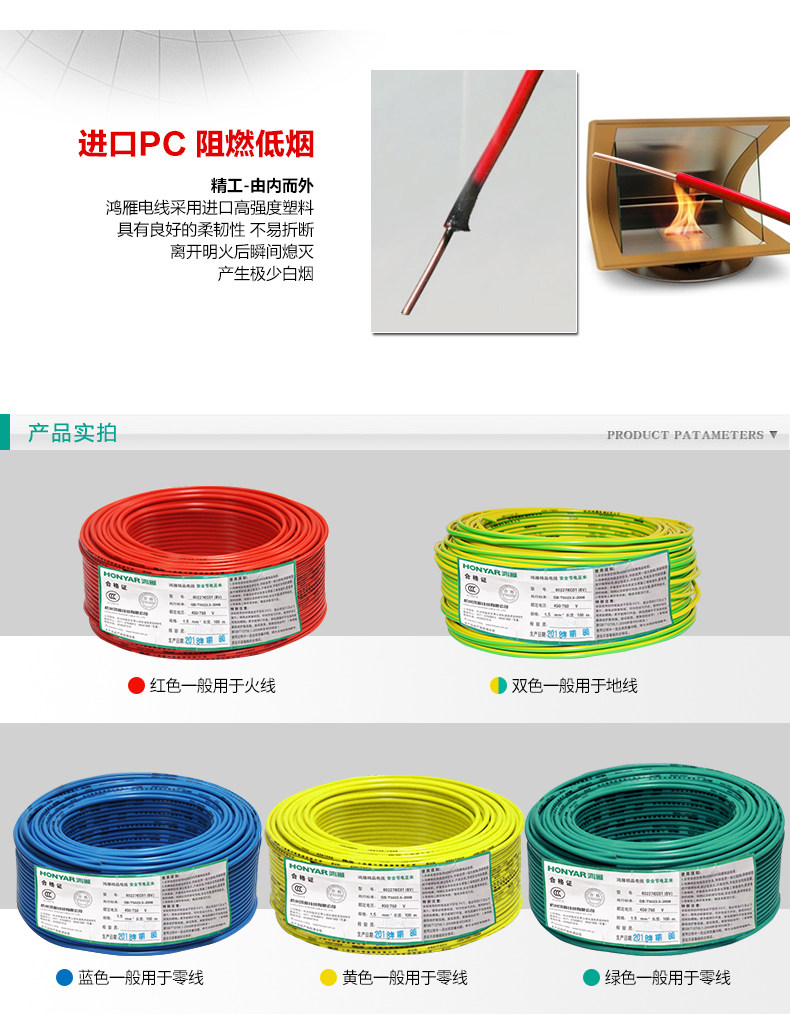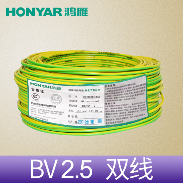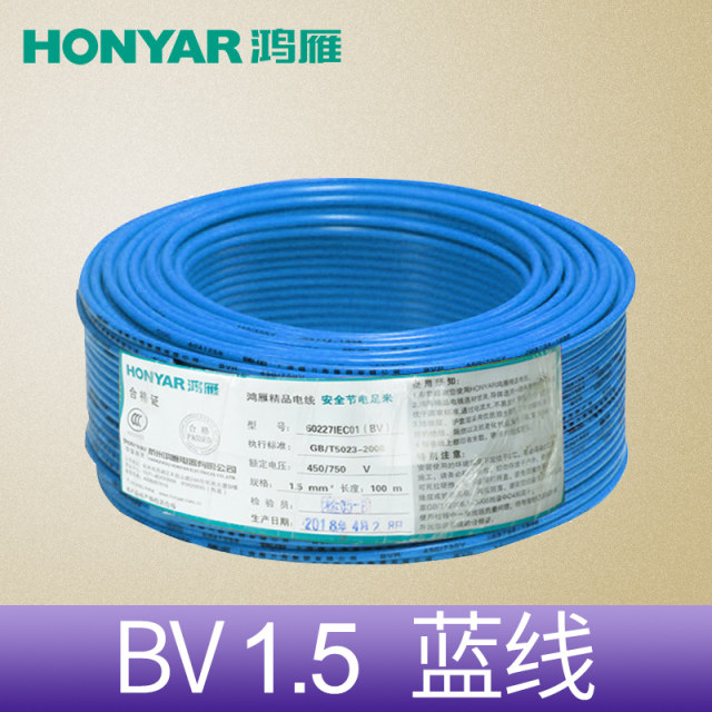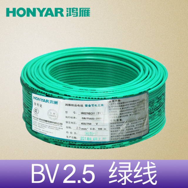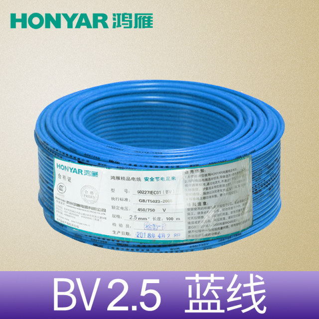 鸿雁电线BV2.5平方铜芯电线国标家装硬线BV1.5 BV4 BV6多色单芯线